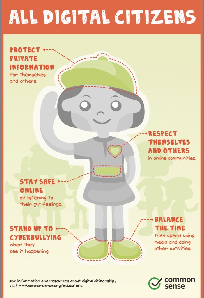 I am finding it tricky to connect digital citizenship with my students age because many of them don’t have access to the digital world. I work in a community school that is demographically diverse. If I worked in a school where each kid had a tablet or iPad at home, we would be having a lot more conversations about the digital world. Many students don’t have their basic needs met, so digital citizenship/identity isn’t a fluid conversation in my class. I know I have a lot to learn still and am excited to dive into the resources I have come across to teach digital citizenship and start having these conversations with students. I will continue to look into resources created for my students age group.